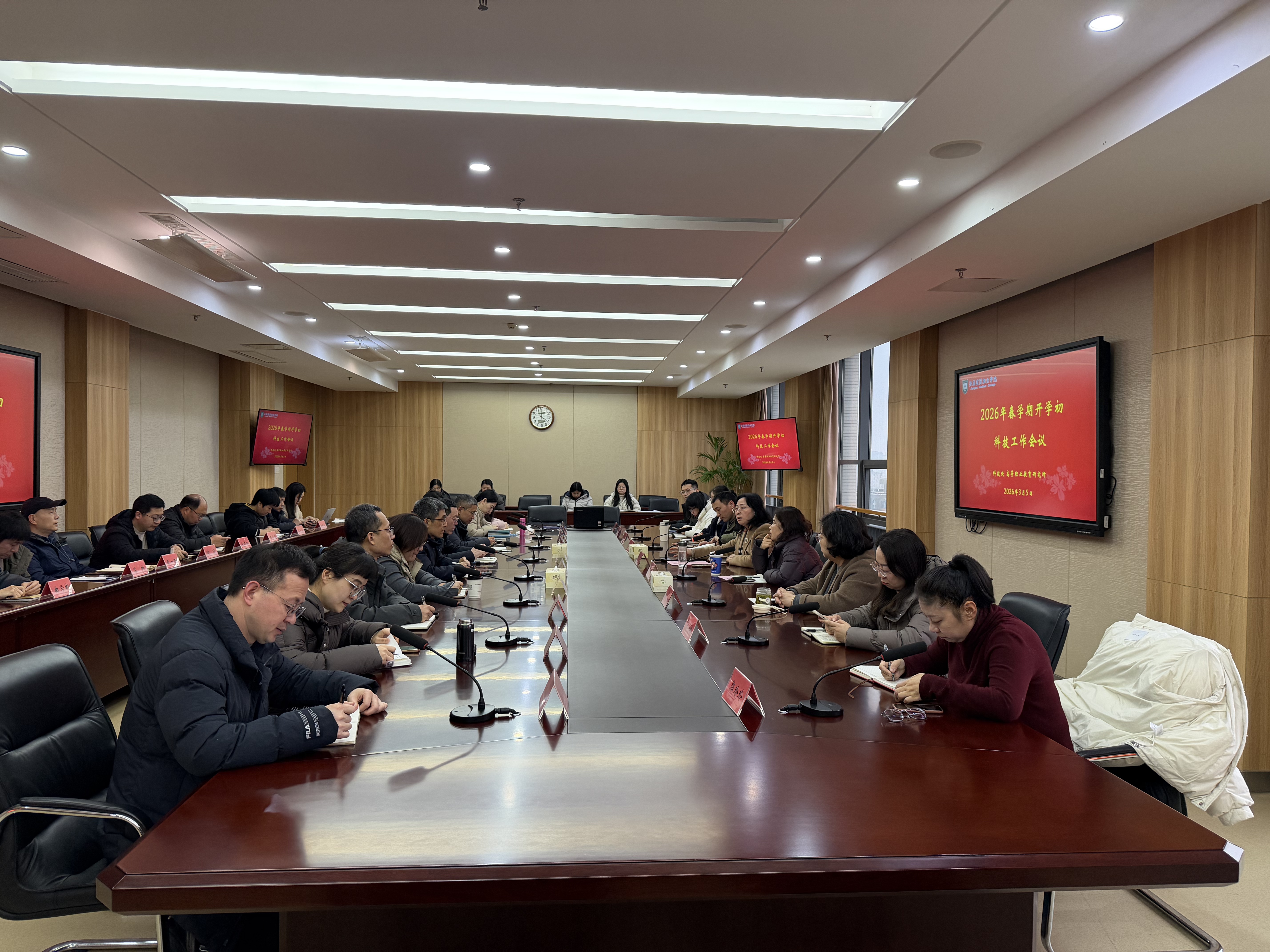 科技处、高等职业教育研究所主要负责人、二级学院(部)分管科技工作相关负责人、校级及以上科技创新平台及团队负责人参加会议。
